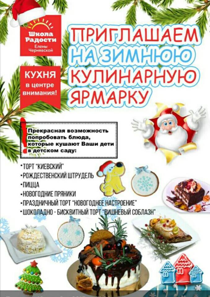 З радістю повідомляємо вам, що 28 і 29 грудня в дитячому центрі Школа радості за адресою: м. Харків, вул. Северина Потоцького, 26 пройде справжнісінький передноворічний кулінарний ярмарок!
